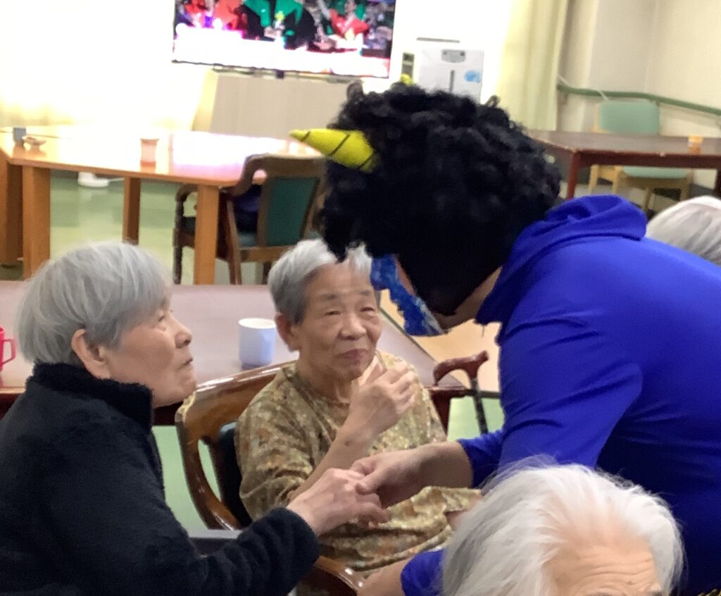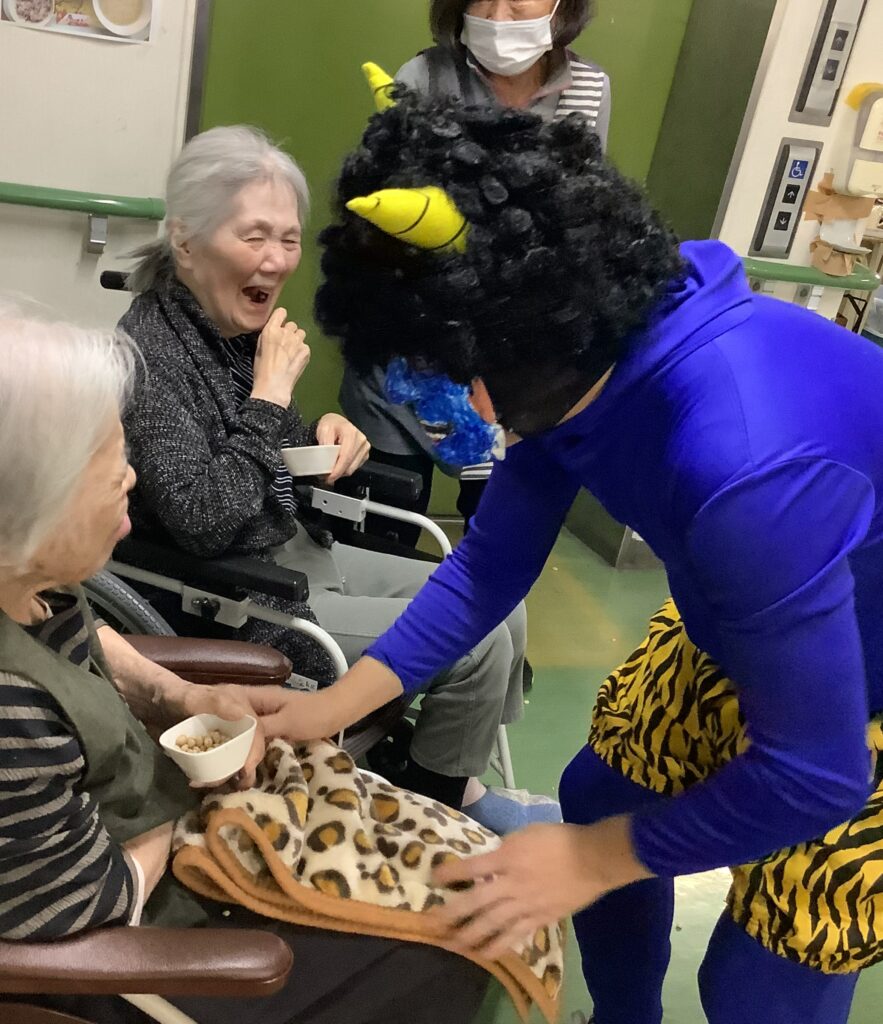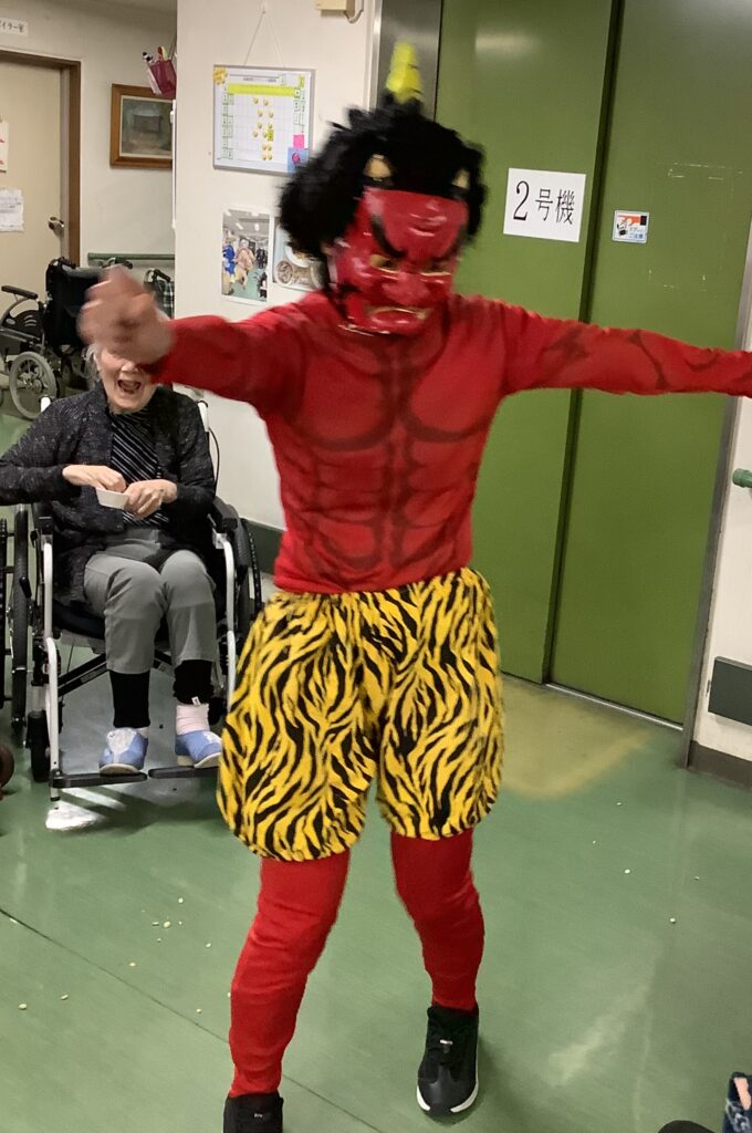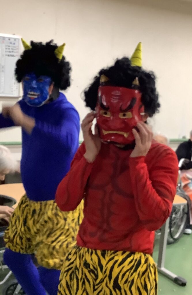 節分ということで、赤鬼、青鬼が井高野園にやってきました!