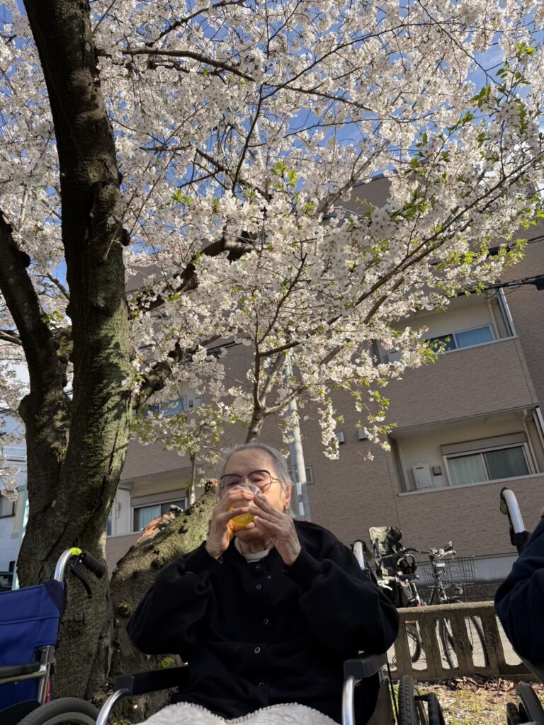桜と人であふれるストリートを通り抜け、桜の下でひと休み…!