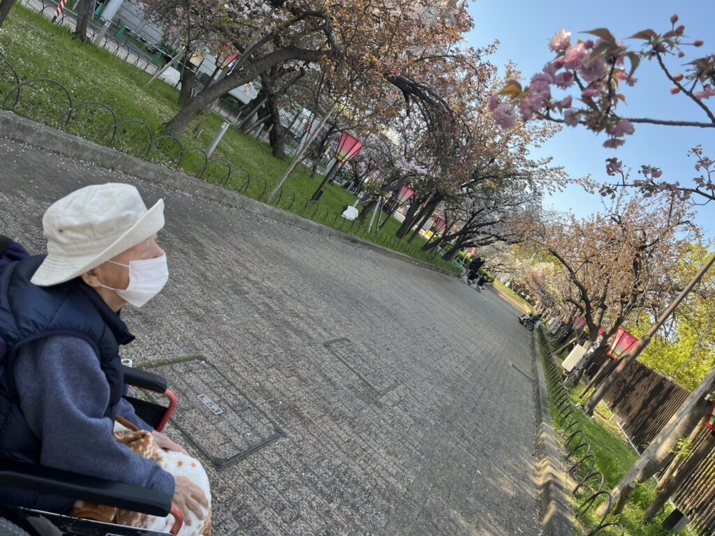 井高野園を代表して3名の方が、造幣局の通り抜けへ…!色鮮やかな、色とりどりの桜を間近で観賞です!桜の下で、自然と顔も朗らかに…!いい顔でハイチーズ…!また行きたいですネ!