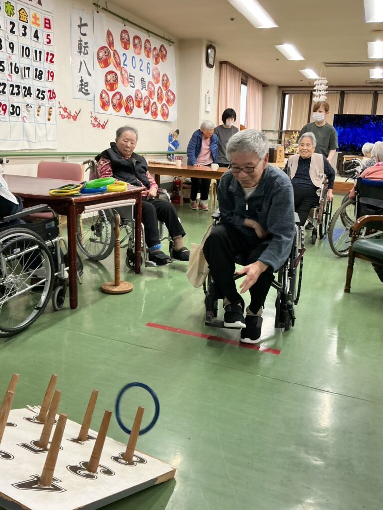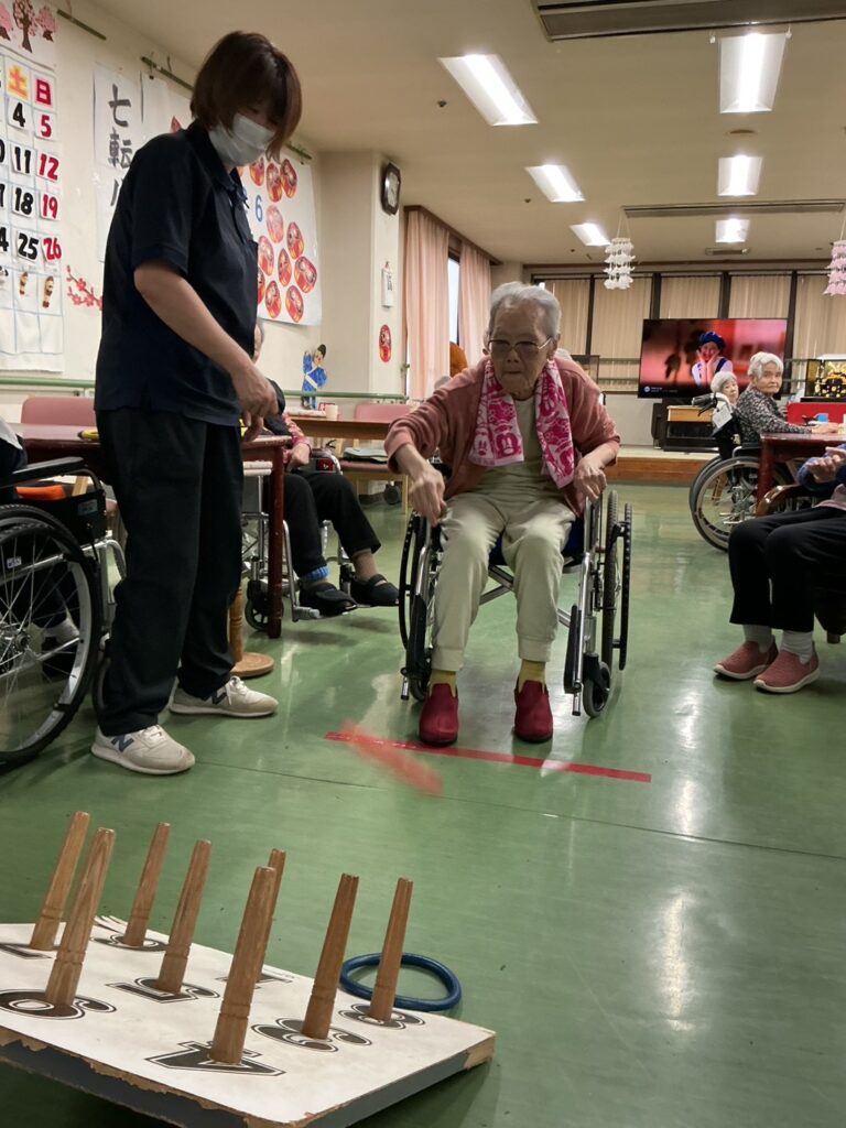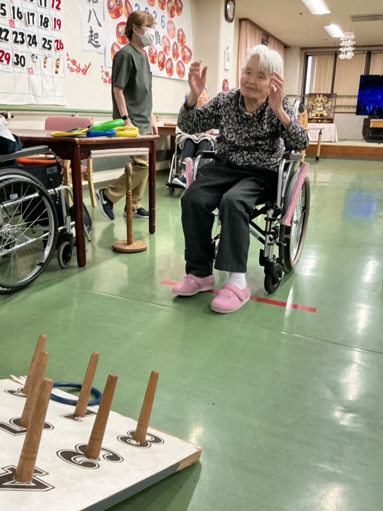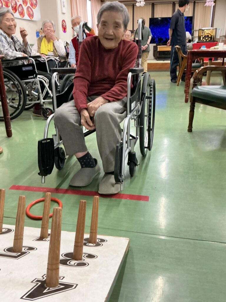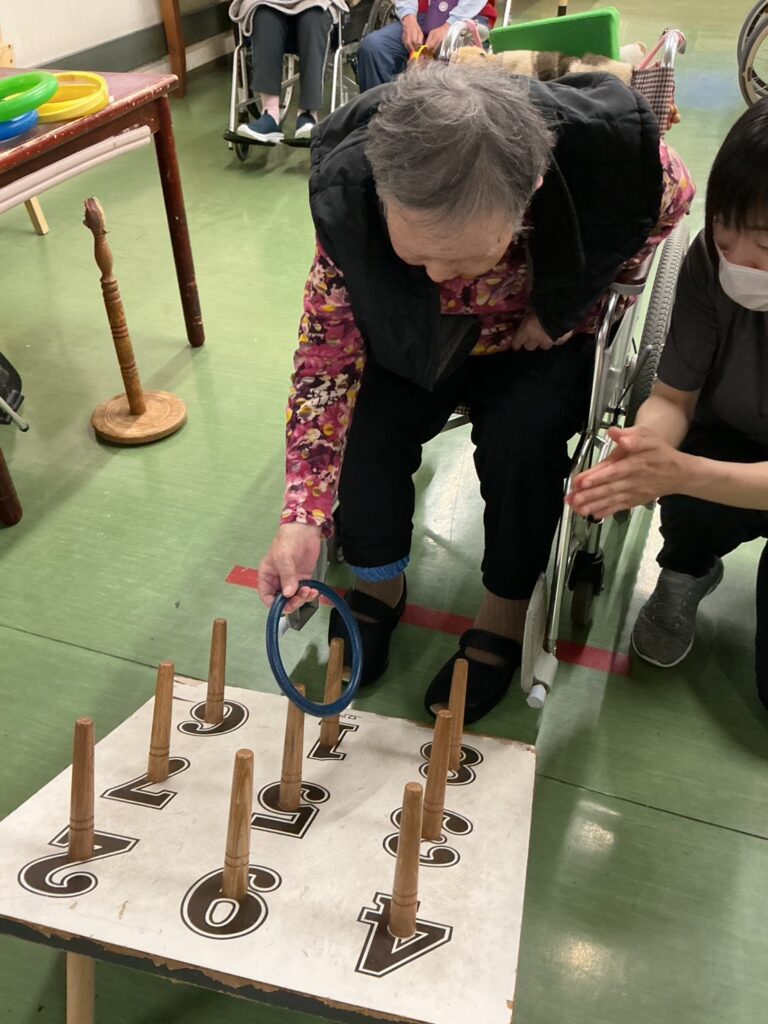 とある日の午後、静かに輪投げ大会が開幕されました。参加者の緊張、集中した表情…。「ホレッ!」「ソレッ!」「エイヤッ!」と放たれる声と輪…!そして歓声が…!いつの間にか白熱した熱い闘いに…!?
