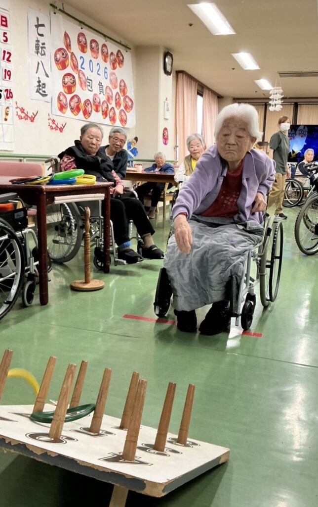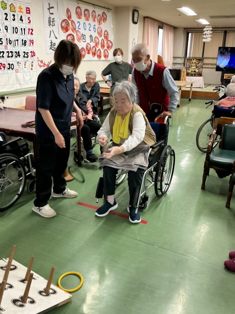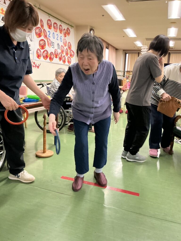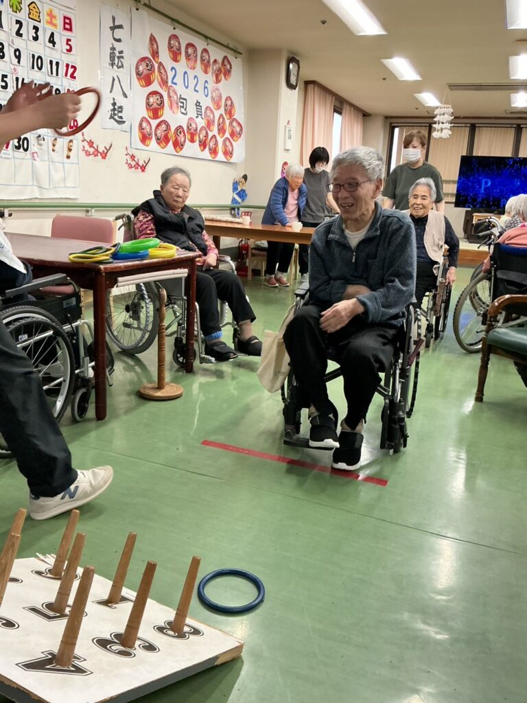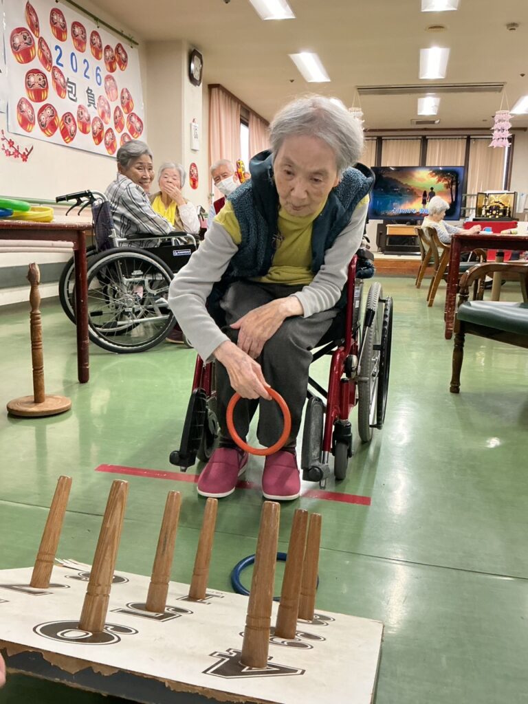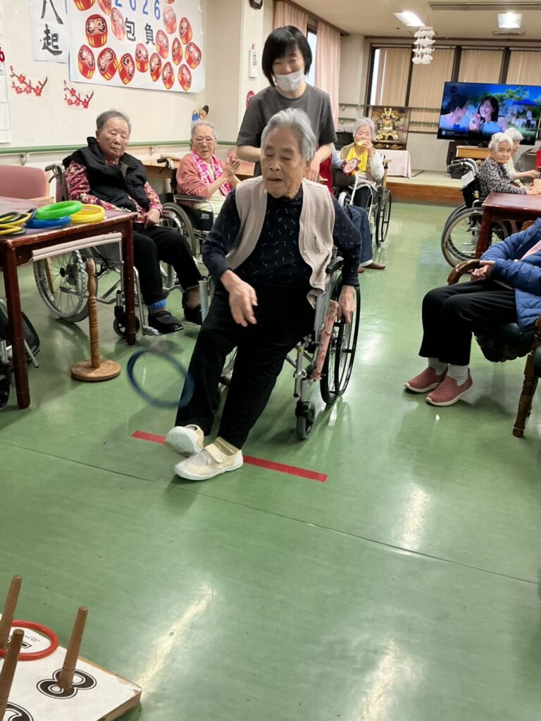 とある日の午後、静かに輪投げ大会が開幕されました。参加者の緊張、集中した表情…。「ホレッ!」「ソレッ!」「エイヤッ!」と放たれる声と輪…!そして歓声が…!いつの間にか白熱した熱い闘いに…!?