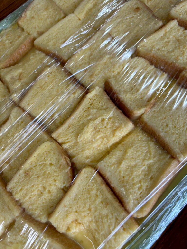 朝から仕込んだ卵液に浸したパンの焼ける香りです…。